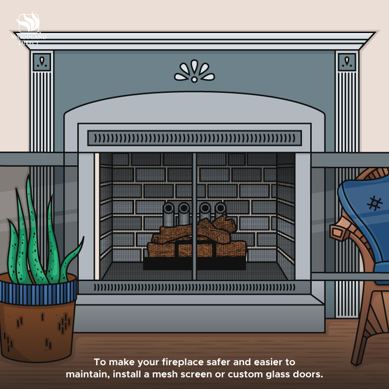 To make your wood burning fireplace safer, more efficient, and easier to maintain, install a mesh screen or custom glass doors.