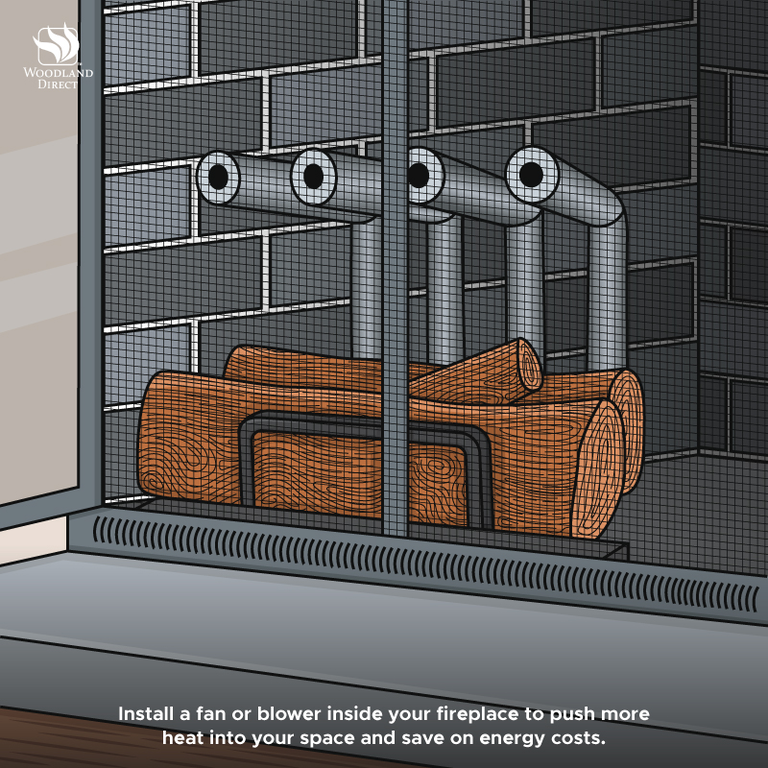Installing a fan or blower inside your wood burning fireplace pushes more heat into your home and distributes warmth evenly around the room, helping you save on energy costs.
