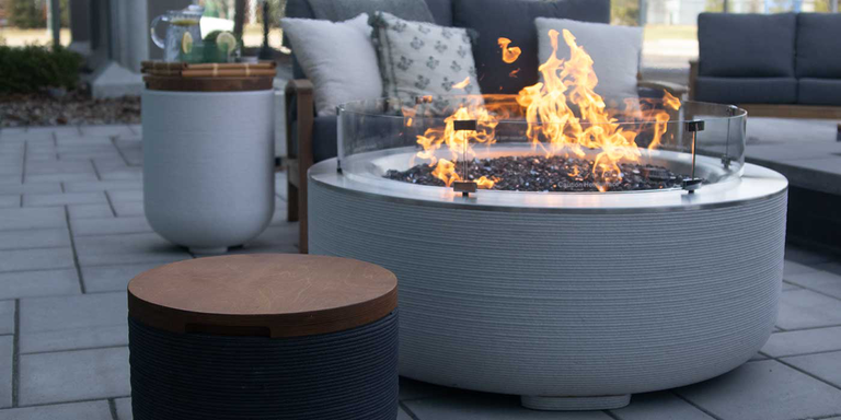 Sustainably created with 3-D concrete printing technology, the new ReForm Stack Gas Fire Pit from FlameCraft marks a new era in luxurious outdoor living.