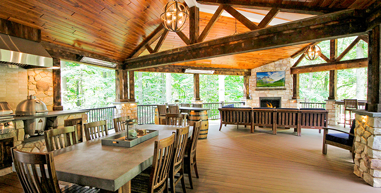 This beautiful home got the upgrade of a lifetime with their new, fully customized open-air deck featuring a Kingsman fireplace.